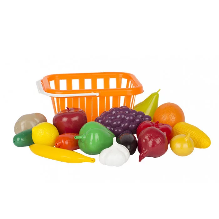 Игровой набор "Фрукты и овощи" в корзине 17 пр. (цвет в ассорт.) (в сетке) У758