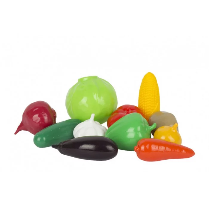 Комплектация: огурец, перец, морковь, свекла, кукуруза, картофель, баклажан, помидор, лук, чеснок, капуста. Игровой набор «Овощи» — набор из пластмассы. Для маленьких детей — это отличная возможность в игровой форме познакомиться с новыми овощами, изучая название, форму и их цвет. Детям же постарше они будут незаменимы в сюжетно-ролевых играх. Игрушка изготовлена из высококачественных материалов. Изделие проверено на соответствие требованиям технических регламентов Таможенного Союза и имеет сертификацию ЕАС.