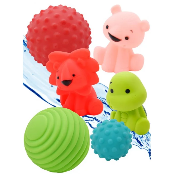 Набор из 6 игрушек для купания займет внимание малыша и сделает водные процедуры веселыми и увлекательными! Изготовлен из безопасного для детей материала. Способствует развитию тактильных ощущений, мелкой моторики и координации движений. В сетке.