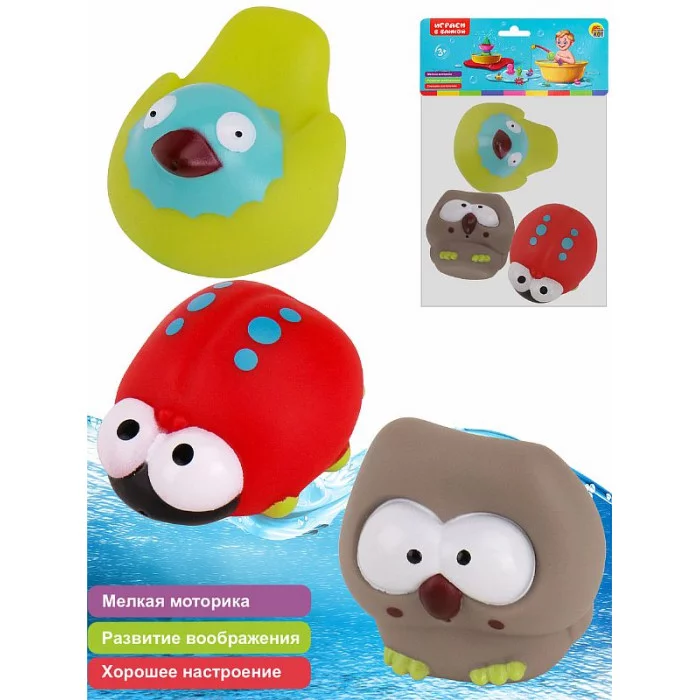 Набор из 3 пищалок для купания займет внимание малыша и сделает водные процедуры веселыми и увлекательными! Изготовлено из безопасного для детей материала. Способствует развитию тактильных ощущений, мелкой моторики и координации движений. В пакете.