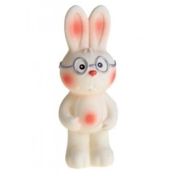 Умный кролик в очках - хорошая игрушка для детской, прогулки и ванны. У него добродушная улыбка, красный нос и торчащие ушки, и он обязательно понравится ребенку. Игрушку можно взять с собой, чтобы разнообразить купание и превратить его в веселую игру.