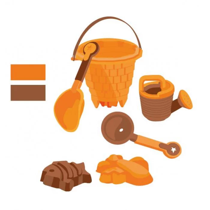 Компания Друзей Песочный набор "Замок" №91 оранжево-коричневый(в комп. ведро 1,2 л, лопатка 23см, воронка 21,5см, 2 формочки 10 см, лейка 0,2 л) 27х19х19 см JB5300635