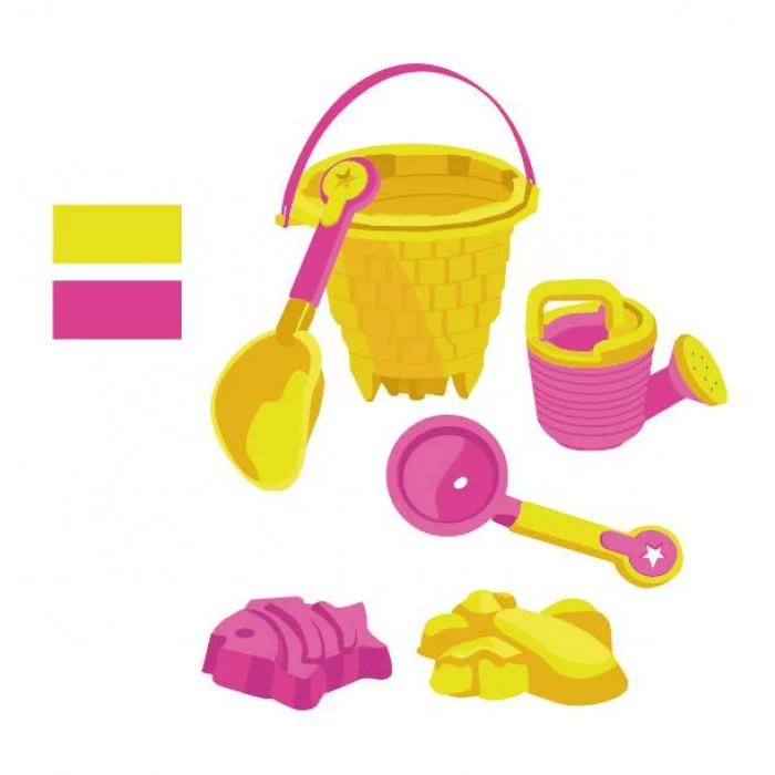 Компания Друзей Песочный набор "Замок" №91 желто-розовый (в комп. ведро 1,2 л, лопатка 23см, воронка 21,5см, 2 формочки 10 см, лейка 0,2 л) 27х19х19 см JB5300633