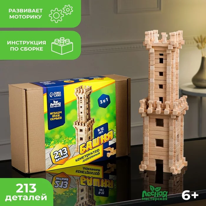 Конструктор деревянный "Башня", 213 деталей, массив 2992588