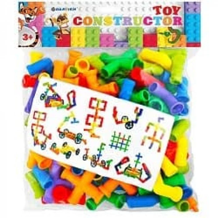 Конструктор детский пластиковый "Darvish" в виде труб + 4 колеса. Для детей от 3-х лет и старше. Для игровых целей. Комплектность: ±90 деталей в виде труб и 4 колеса.Диаметр колеса:5см.Диаметр труб:1,5см Развивает мелкую моторику, творческое мышление и пространственноне воображение, а также тренирует внимание и зрительную память. Есть вкладыш с примером собранных фигур.