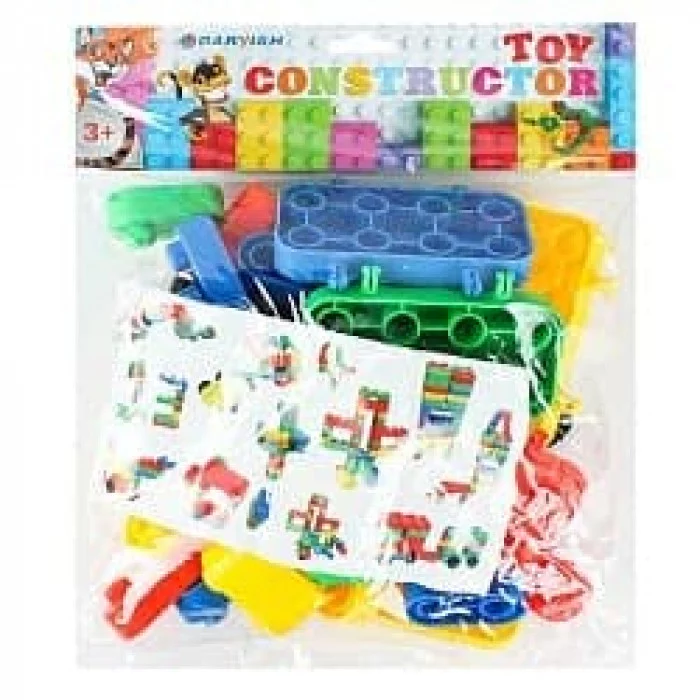 Конструктор детский пластиковый, 45 деталей. Размер самой большой детали (колесная база) - 12х6х2,5см, размер колеса - 3,5х1см. Средняя деталь - 9х3х2,5см, маленькая деталь - 6х3х2,5см. Развивает мелкую моторику, творческое мышление и пространственноне воображение, а также тренирует внимание и зрительную память. Есть вкладыш с примером собранных фигур.