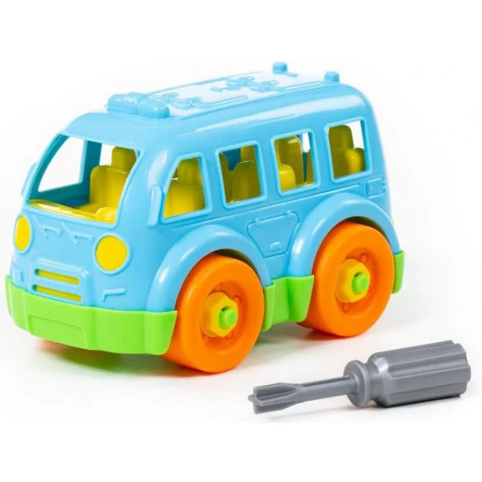Конструктор-транспорт Автобус малый от компании Полесье - это универсальная игрушка 2 в 1, которая может служить малышу в качестве конструктора и машинки для сюжетных игр. Игрушка выполнена из высококачественного пластика в яркой цветовой гамме. В комплекте имеется крестообразная отвертка. Игра с конструктором Автобус малый способствует реализации конструктивно-модельной деятельности ребенка, развитию любознательности и смекалки.