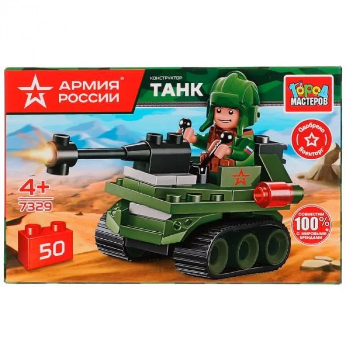 АРМИЯ РОССИИ конструктор ТАНК, 50 дет. Город мастеров 7329-JS