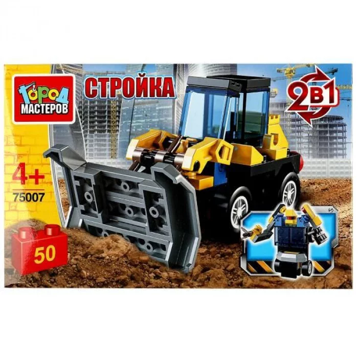 Конструктор БУЛЬДОЗЕР 2в1 (инерция), 50 дет. Город мастеров 75007-JS