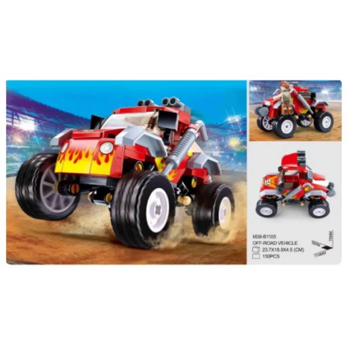 Конструктор пластик SLUBAN.Внедорожник-1 (150 дет., 1 фигура, в кор.)(23, 7X18, 9X4, 5) (Арт. M38-B1105)
