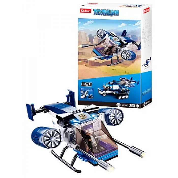 Конструктор пластиковый. SLUBAN Полиция. Патрульный вертолет (105 деталей). Арт. M38-B0760D