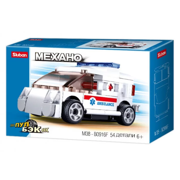 Конструктор пластиковый Sluban PowerBricks. Скорая (54 дет.) (Арт. M38-B0916F)