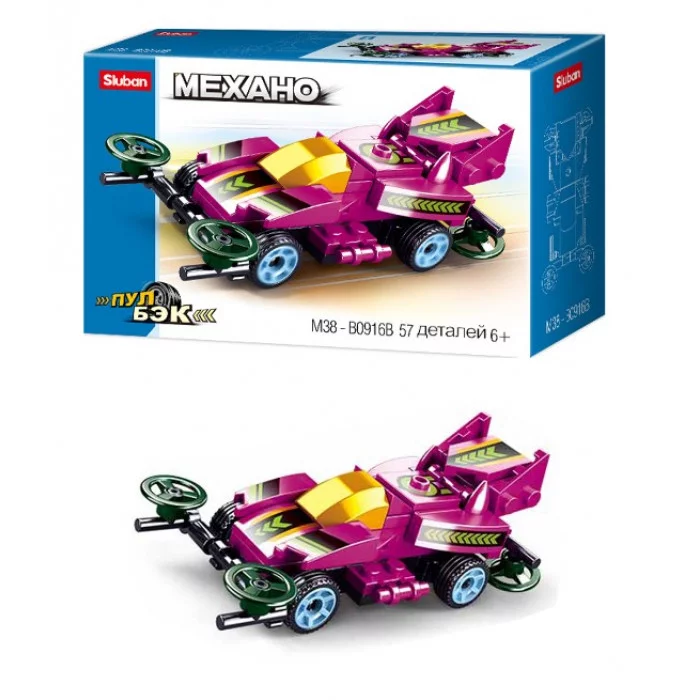 Конструктор пластиковый Sluban PowerBricks. Супер гонка 2 (57 дет.) (Арт. M38-B0916B)