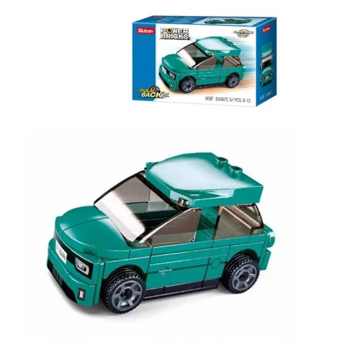 Конструктор пластиковый.SLUBAN.Автомобиль бирюзовый (57 дет.,в кор.).Арт. M38-B1067C