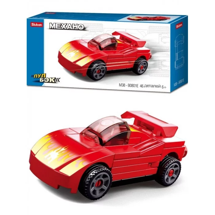 Конструктор пластик.SLUBAN.МЕХАНО.Гоночная машинка 5 инерц.(46 дет,в коробке) (Арт. M38-B0801E)
