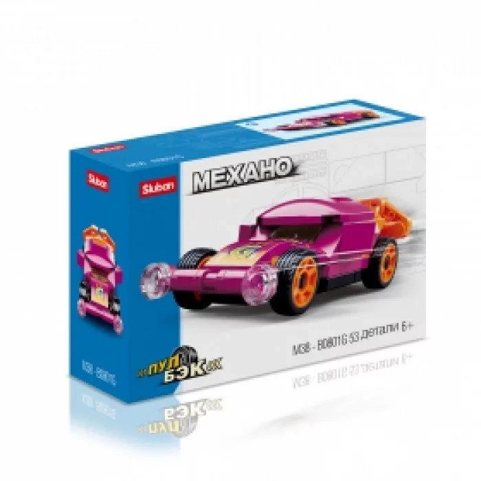 Конструктор пластмассовый Sluban "Пуллбэк: Розовая гоночная машина" (53 дет., пружин. механизм) (10702070/060421/0092956/1, КИТАЙ) M38-B0801G