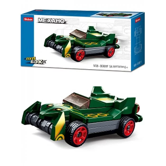 Конструктор пластмассовый Sluban "Пуллбэк: Зелёная гоночная машина" (54 дет., пружин. механизм) (10702070/060421/0092956/1, КИТАЙ) M38-B0801F