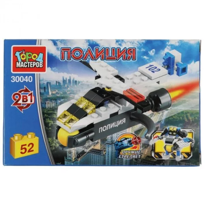 Конструктор полицейская ВЕРТОЛЕТ 2в1 (стреляет шариком), 52 дет. Город мастеров 30040-JS