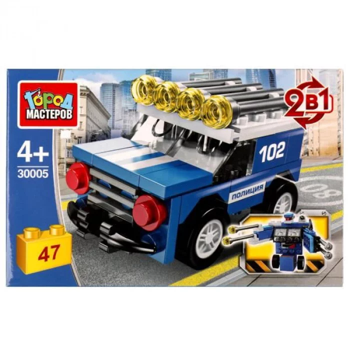 Конструктор ПОЛИЦЕЙСКИЙ ДЖИП 2в1, 47 дет. Город мастеров 30005-JS
