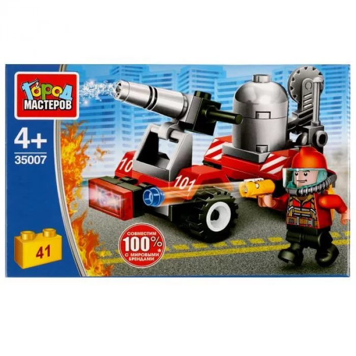 Конструктор ПОЖАРНЫЙ на машине, 41дет. Город мастеров 35007-JS