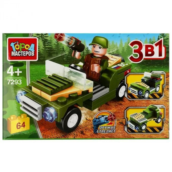 Конструктор солдат на джипе 3в1, 64 дет. Город мастеров 7293-PZ
