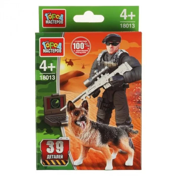 Конструктор солдат с собакой, 39 дет. Город мастеров 18013-XY