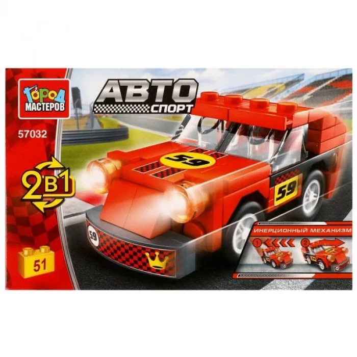 Конструктор СПОРТКАР 2в1 инерция , 51 дет. Город мастеров 57032-JS