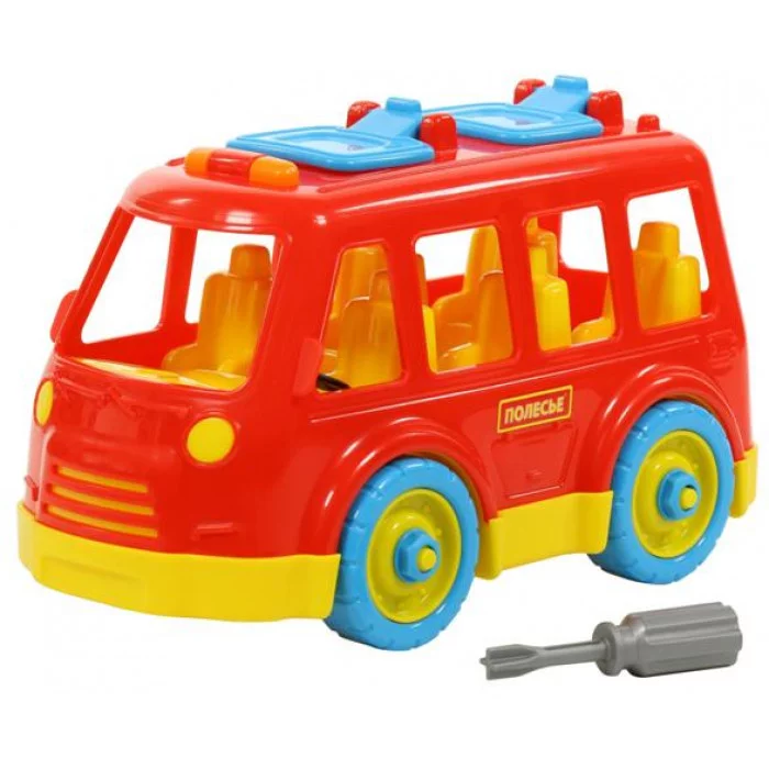 Все элементы автобуса представлены в виде конструктора, который соединяется с помощью пластмассовых шурупов.