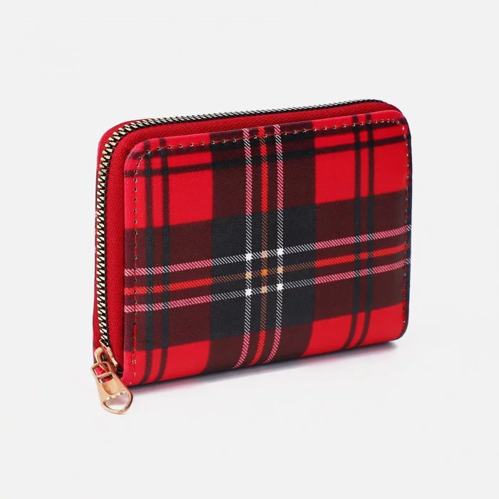 Кошелек 07-01-13 Клетка, 13*2*9 см, 3 отд, на молнии, красный 9494868