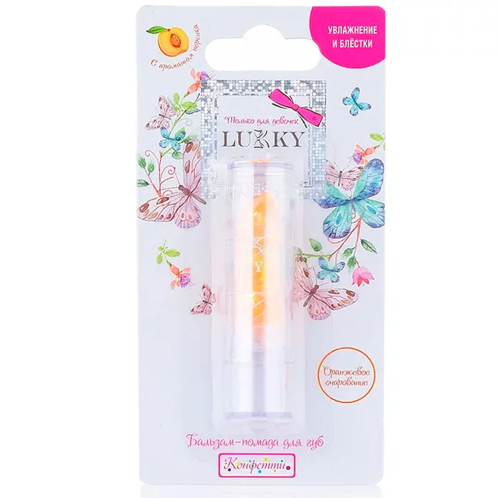 Бальзам-помада Конфетти прозрачн.с оранж.блестками с ароматом персика,3,3 г Т21976 LUKKY 615-613