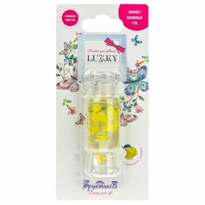 Прозрачный глянец для губ c кусочками фруктов серии «Фруктикiss» от известного бренда LUKKY создаст на губах сияющее покрытие.