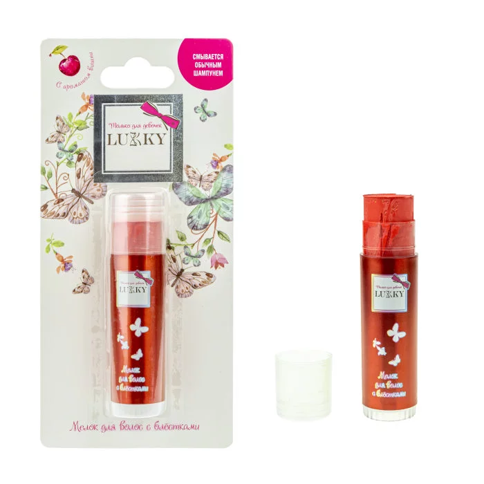 Мел для/волос с блестками аромат вишни 10гр. красный Lukky Т18859 613-270