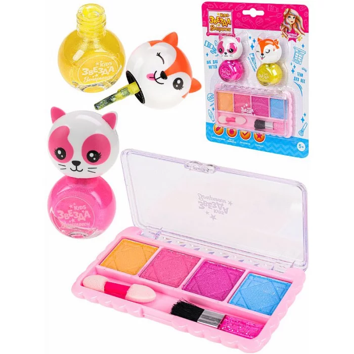 Набор детской косметики "Кошечка" (тени, лак для ногтей, апплик, кисть, цвет микс) ( Арт. КС-5224)