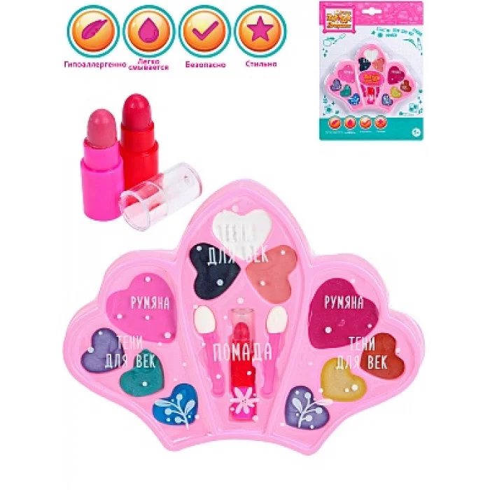 Каждая девочка с раннего детства мечтает быть красивой, подражает маме, героине из мультика или любимой актрисе и певице. Придать очарования и шарма поможет детская косметика. Набор "Цветочек" вызовет восторг у каждой модницы. С его помощью юная леди научится пользоваться косметикой, создавать яркие и неповторимые образы. Все косметические средства, входящие в набор, гипоаллергенны, безопасны и легко смываются тёплой водой. Упаковано в пластиковый блистер.В набор входят: кремовые тени для век- 9шт, кремовые румяна- 2шт, губная помада- 2шт, аппликатор- 2шт. Набор косметики продаётся на планшете с европодвесом.