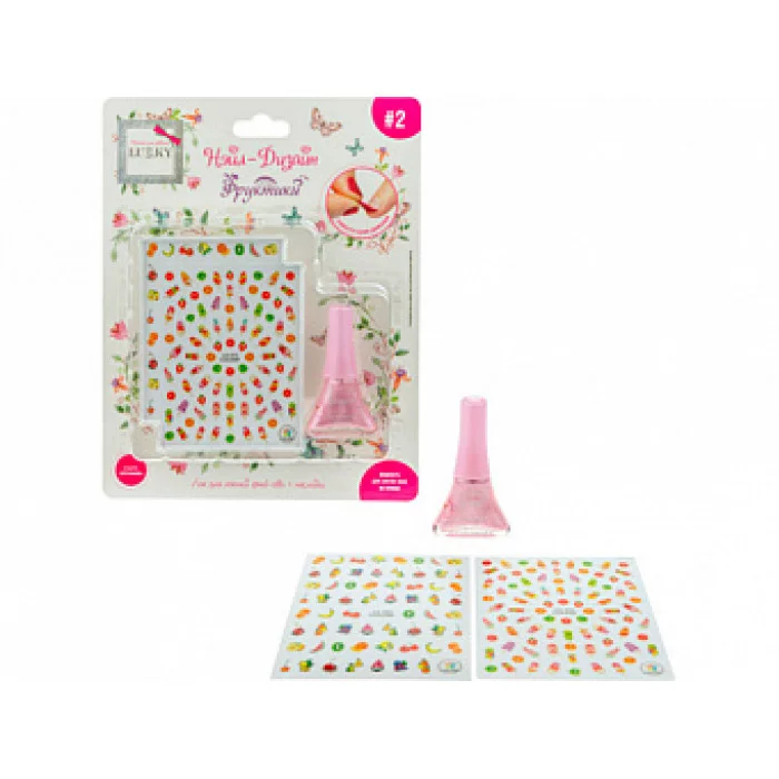 Набор Нэйл-Дизайн лак д/ногтей peel-off сиренево-перламутровый металл+наклейки Фруктики Т19480 LUCKY 613-304