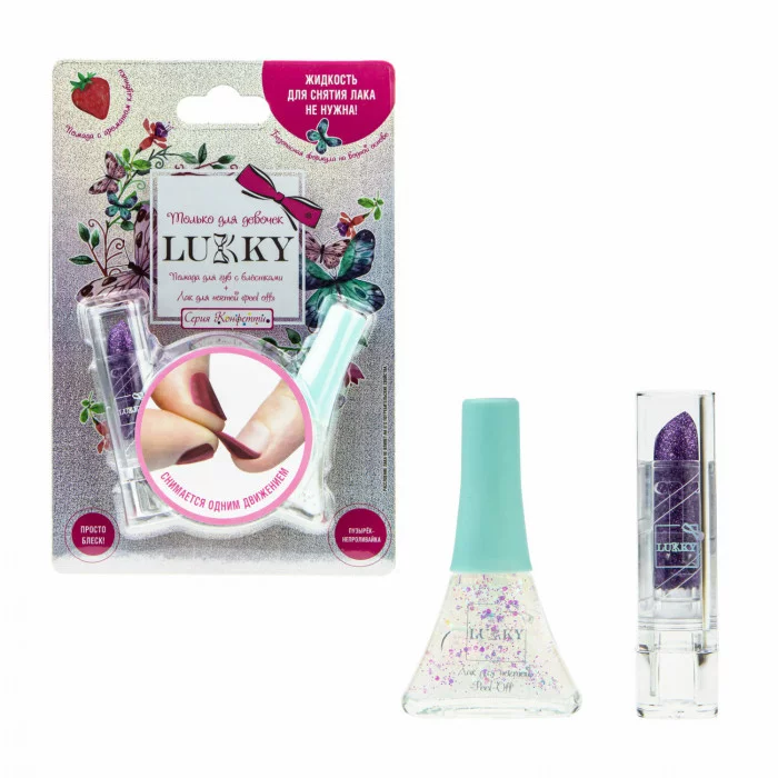 Набор Нэйл-Дизайн лак Конфетти цв. 01К, перламутр с блестками и помада с блёстками фиолет Т20841 614-268