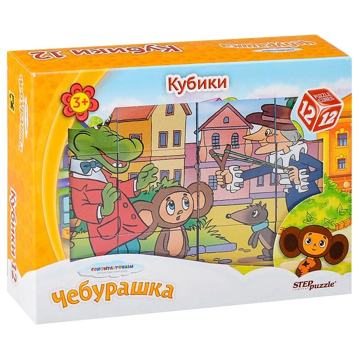 Набор из 12 кубиков "Чебурашка" – для тех, кто освоил навык сборки картинки из 9 кубиков. Заложенный дидактический принцип «от простого к сложному» позволит ребёнку поверить в свои силы. А герои мультфильма "Чебурашка" сделают кубики любимой игрушкой. Собирая этот набор ребенок получит 6 картинок из мультфильма. В наборе 12 пластмассовых кубиков.