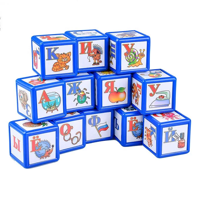 Изучайте буквы, составляйте первые слоги и слова с помощью пластиковых кубиков с веселыми картинками!