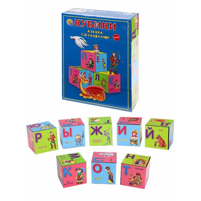 КУБИКИ ПЛАСТИКОВЫЕ. 12 шт. АЗБУКА СО СКАЗКАМИ (Арт. К12-0286)