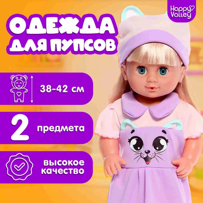 HAPPY VALLEY Одежда для пупсов "Киса", платье и шапочка 9933387