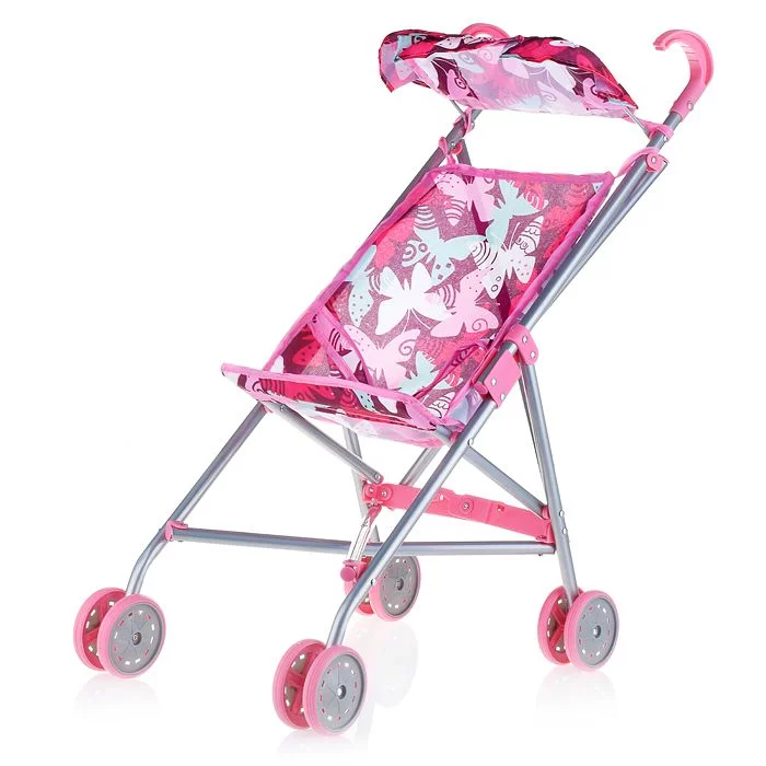 Коляска для кукол, металлическая, складная, прогулочная с козырьком, цвет бабочки 9302S