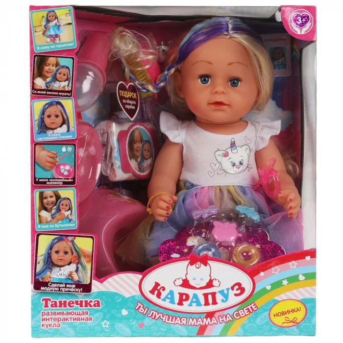 Развивающая интерактивная кукла "Танечка" станет прекрасным подарком для вашей маленькой принцессы: -плачет настоящими слезами -волшебный маникюр меняет цвет в зависимости от температуры -пьет из бутылочки -ходит на горшок.