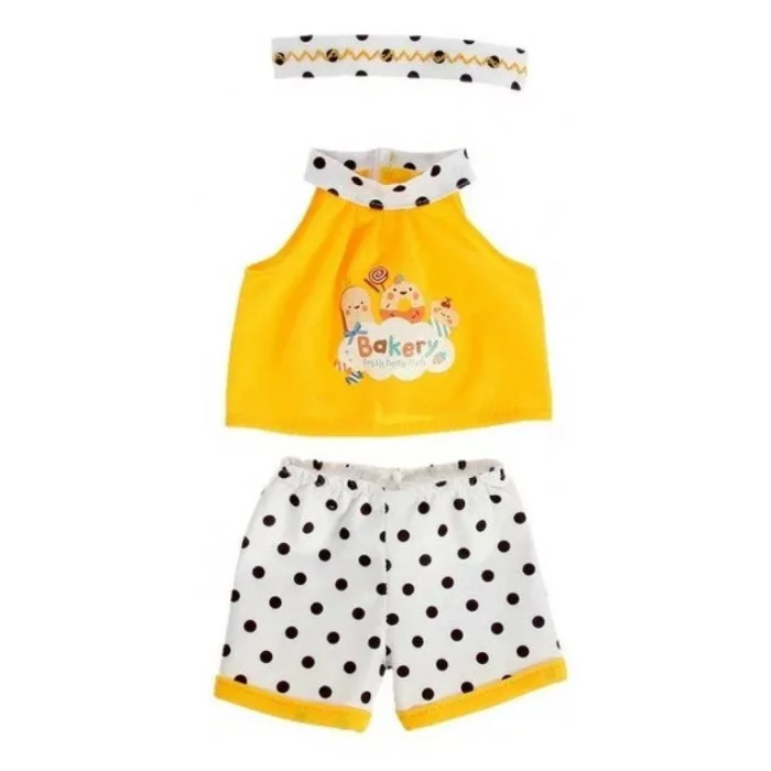 Добавьте в гардероб любимой куклы вашей малышки стильную одежду! Ведь для разных жизненных ситуаций пупсу нужен соответствующий образ. Подробнее о комплектеВ набор входит майка, шорты, повязка на голову. Комплект с красочным принтом и гармоничным сочетанием цветов. Подходит для кукол ростом 40–44 см. Майка фиксируется липучками сзади, поэтому выглядит аккуратно и хорошо сидит на пупсике. А ещё с такими застёжками малышка сможет быстро переодеть куклу. Одежда выполнена из приятной на ощупь ткани. Пополняйте гардероб стильными вещами — в серии представлена и другая одежда для кукол. Играть в куклы — полезноПодбирая одежду пупсу и наряжая его, девочка улучшает сообразительность, тренирует фантазию, эстетический вкус и мелкую моторику, а также учится одеваться по погоде.