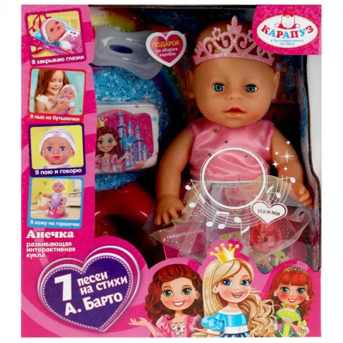 Пупс озвуч Барто А. Анечка 35см, пьет, пис, закр глаза, 100 фраз, 4 акс КАРАПУЗ 340093