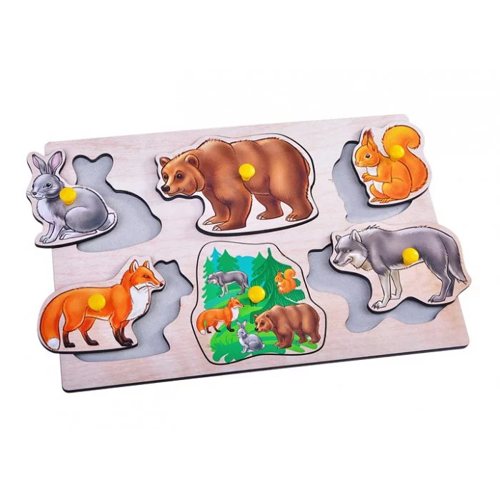 В наборе: доска с цветными вкладками. карточка с изображением силуэтов животных.