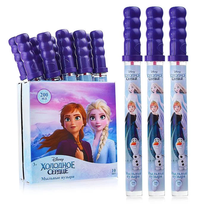 Размер упаковки: 38 х 4 х 4 см Вид упаковки: пластиковая кобла Страна производитель: Россия Материал: мыльный раствор Объём: 200 мл. Возраст: 3+ Мыльные пузыри «Холодное сердце» станет прекрасным подарком для маленьких непосед! Дети будут с большим восторгом и интересом пускать и смотреть как лопаются мыльные пузырьки. Мыльный раствор находится в колбе, которая обернута в термоплёнку с изображением любимых героев диснеевского мультфильма «Холодное сердце». В процессе игры с мыльными пузырями ребенок развивает внимательность, воображение, моторику и координацию. Открутите ручку с венчиком и выдувайте мыльные пузыри!