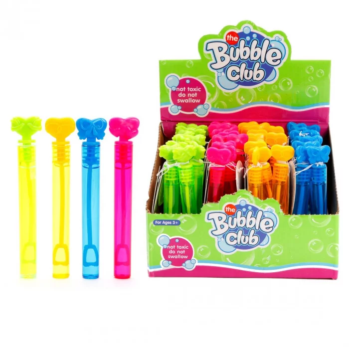 Игрушка для пускания не лопающихся мыльных пузырей «Бантик». Представлена в ассортименте в 4-х цветовых вариациях. Длина каждой игрушки составляет 10,5 см, объём: 4 мл. Материалы изготовления: пластмасса, мыльный раствор. Рекомендованный возраст: 3 года +