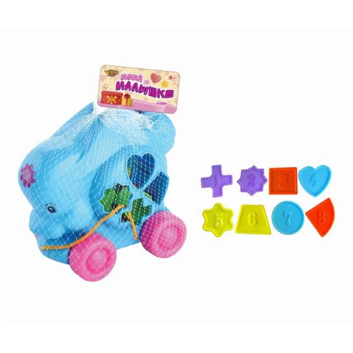 Каталка-сортер "Зайка" на колёсиках с верёвочкой, логические фигуры, сетка 18*9,5*17 см.