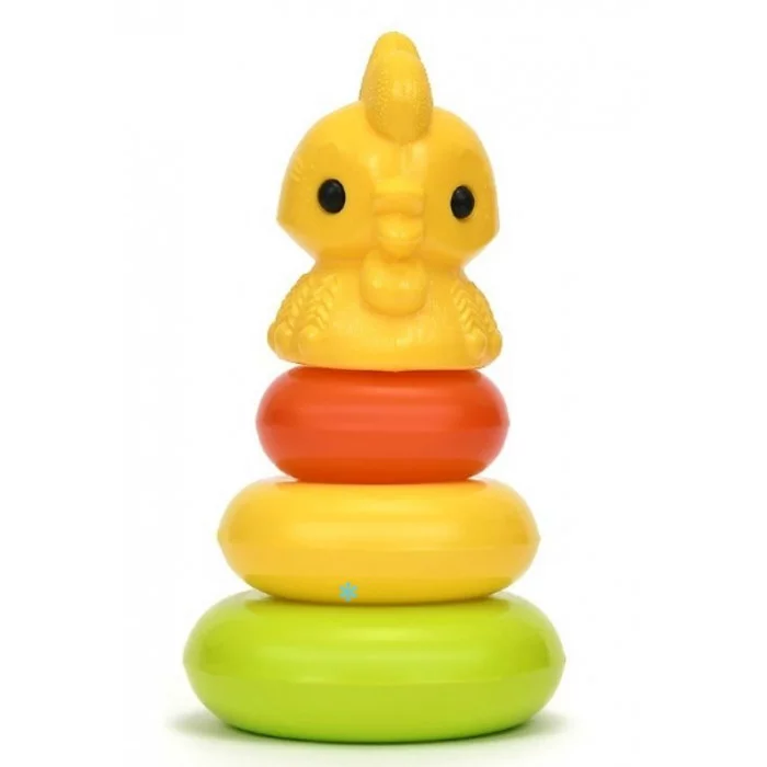 Пирамидка Петушок - это две игры в одной - классическая пирамидка и игрушка в виде животного. Она состоит из трех колец разного размера, которые от большего к меньшему нужно надеть на стержень, а вершину ее украшает симпатичная голова петушка. Сборка пирамидки - это простая и в то же время полезная развивающая игра, которая подойдет деткам от одного до трех лет.
