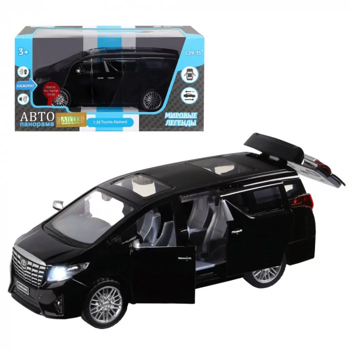 Автопанорама Машинка металлическая, 1:29, Toyota Alphard, черный, откр. передние и боковые двер